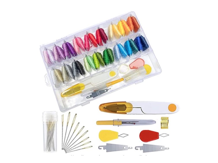 - El paquete incluye: 192 colores para bordar, 48 agujas de bordar en botella, 4 herramientas para enhebrar agujas, 3 cojines de alfileres, 2 bolígrafos solubles en agua, 2 dedales de costura de metal, 1 herramienta de desenroscar, 1 tijeras, 1 caja organizadora transparente.