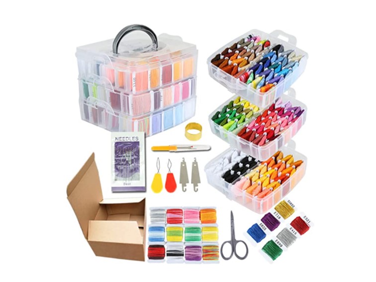 Juego de 192 hilos para bordar, incluye hilo de punto de cruz, pulsera de la amistad con caja transparente de 3 niveles para almacenamiento.